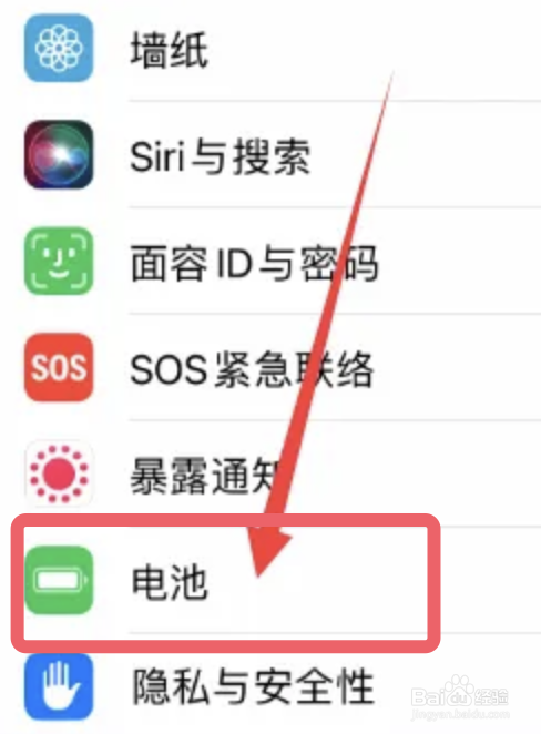 首先打开手机的设置,点击进入【电池】选项。