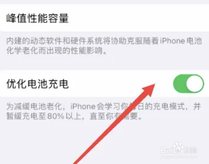 然后我们点击开启【优化电池充电】即可。