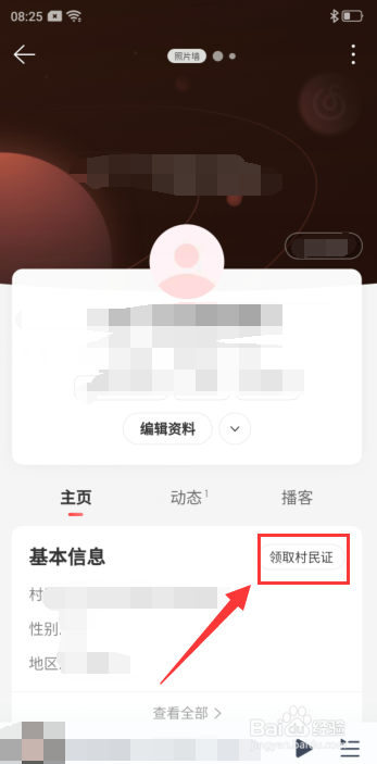 进入网易云音乐个人资料页面;点击【领取村民证】。
