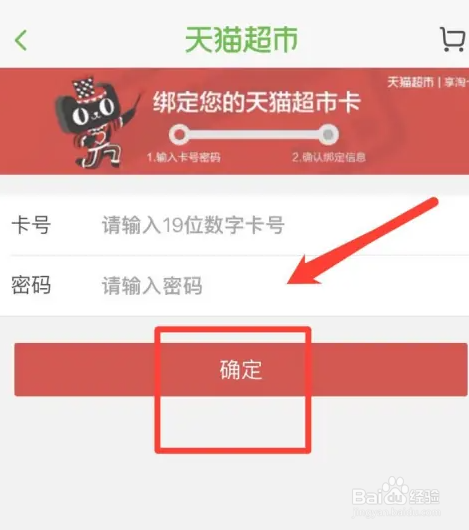 最后进入绑卡页面,输入卡号和密码,点击确定就可以了。