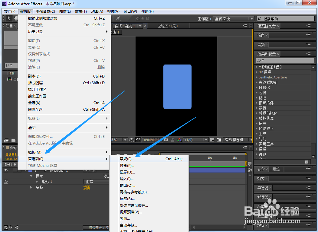 Ae在哪里能够进行常规设置
