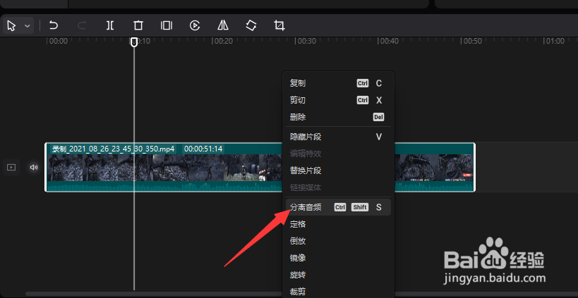 接下来,我们需要将将视频中的音频从其轨道上进行分离。