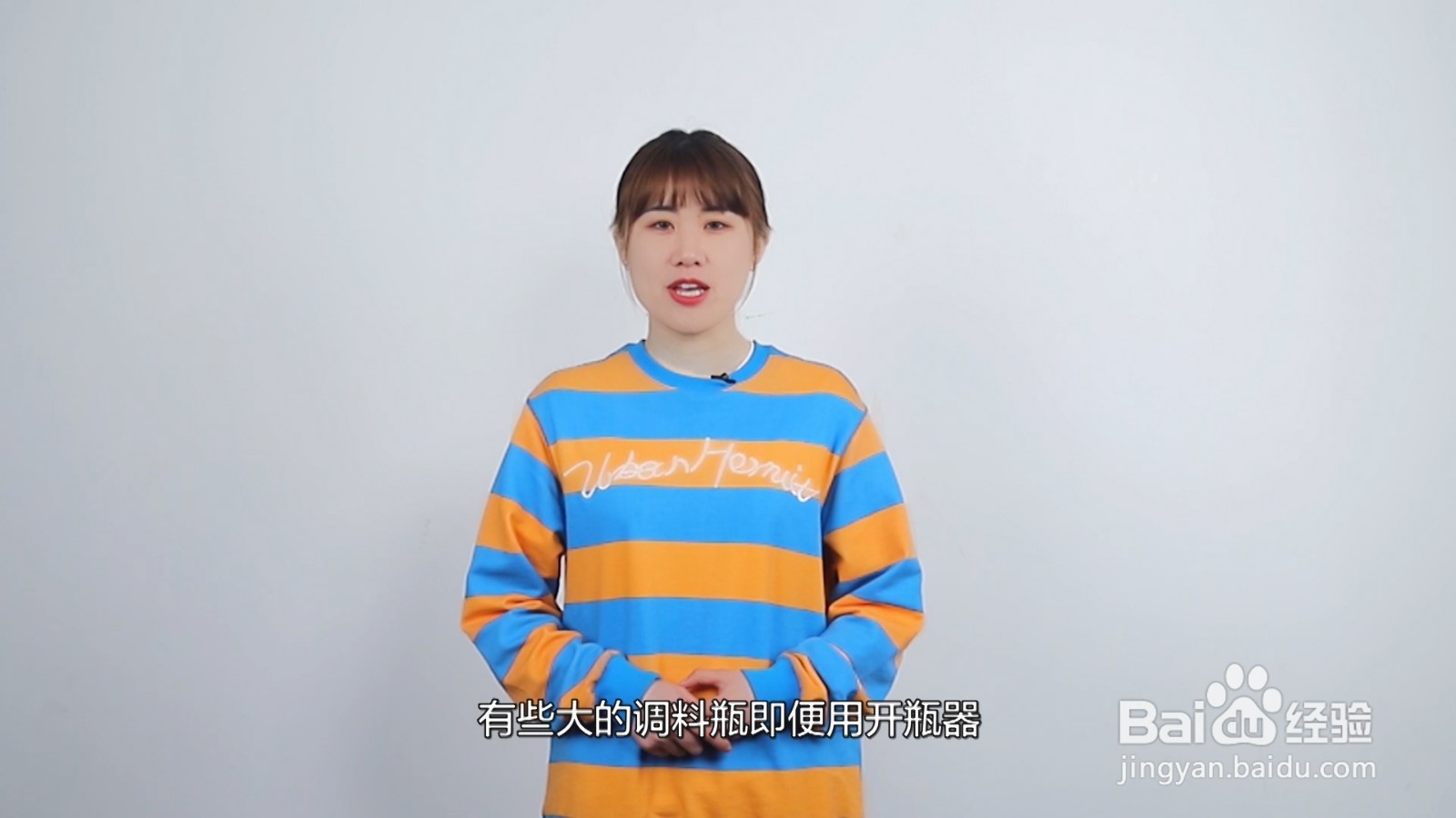 有些大的调料瓶即便用开瓶器也不是很好打开,这时候可以用一只不锈钢的勺子轻撬瓶盖的边缘,撬开一点儿时就有气体进入,很轻松就能把瓶子打开。