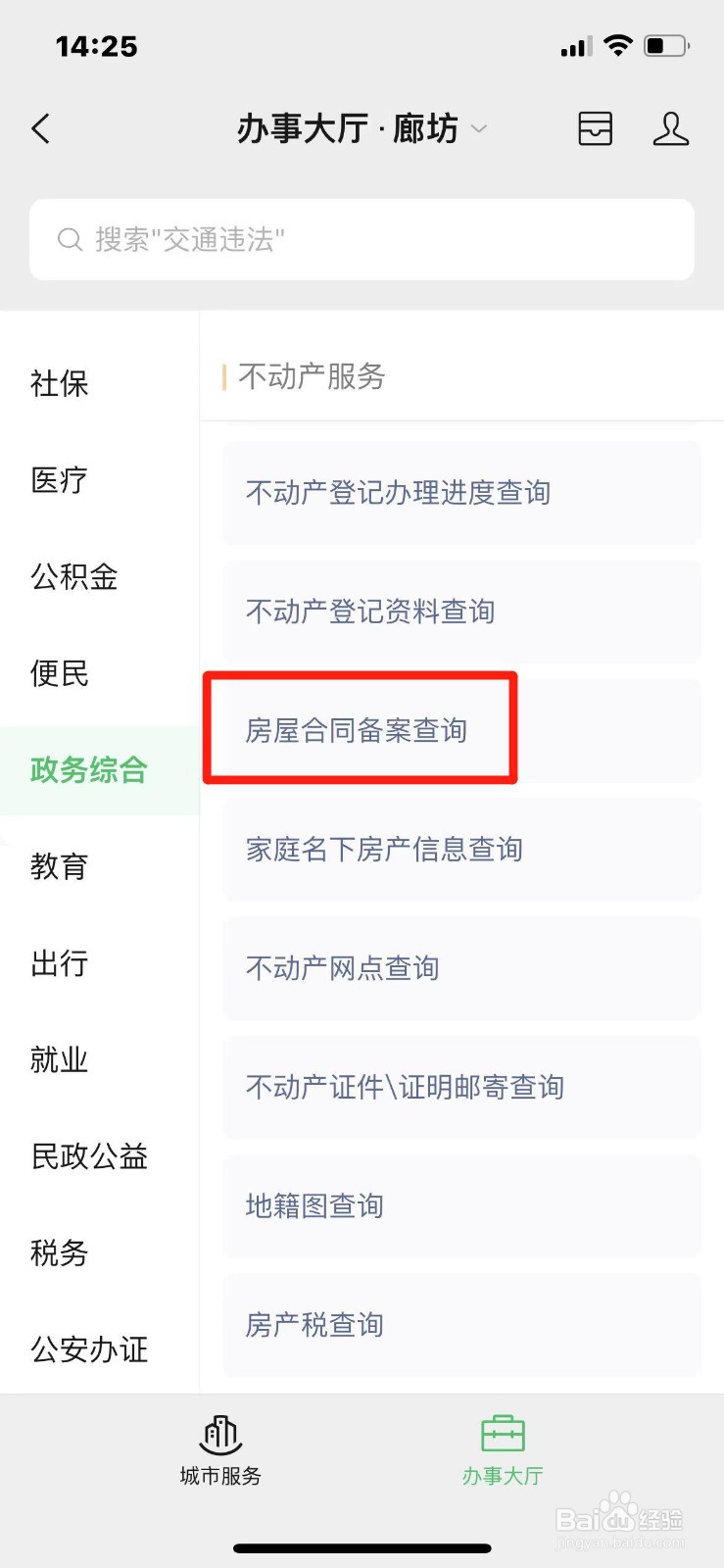 第三步:在办事大厅页面点击【房屋合同备案查询】即可。