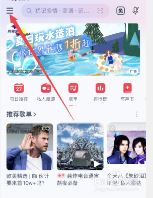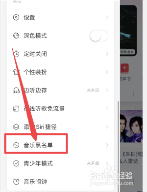 向上滑动左侧列表选项,点击“音乐黑名单”。