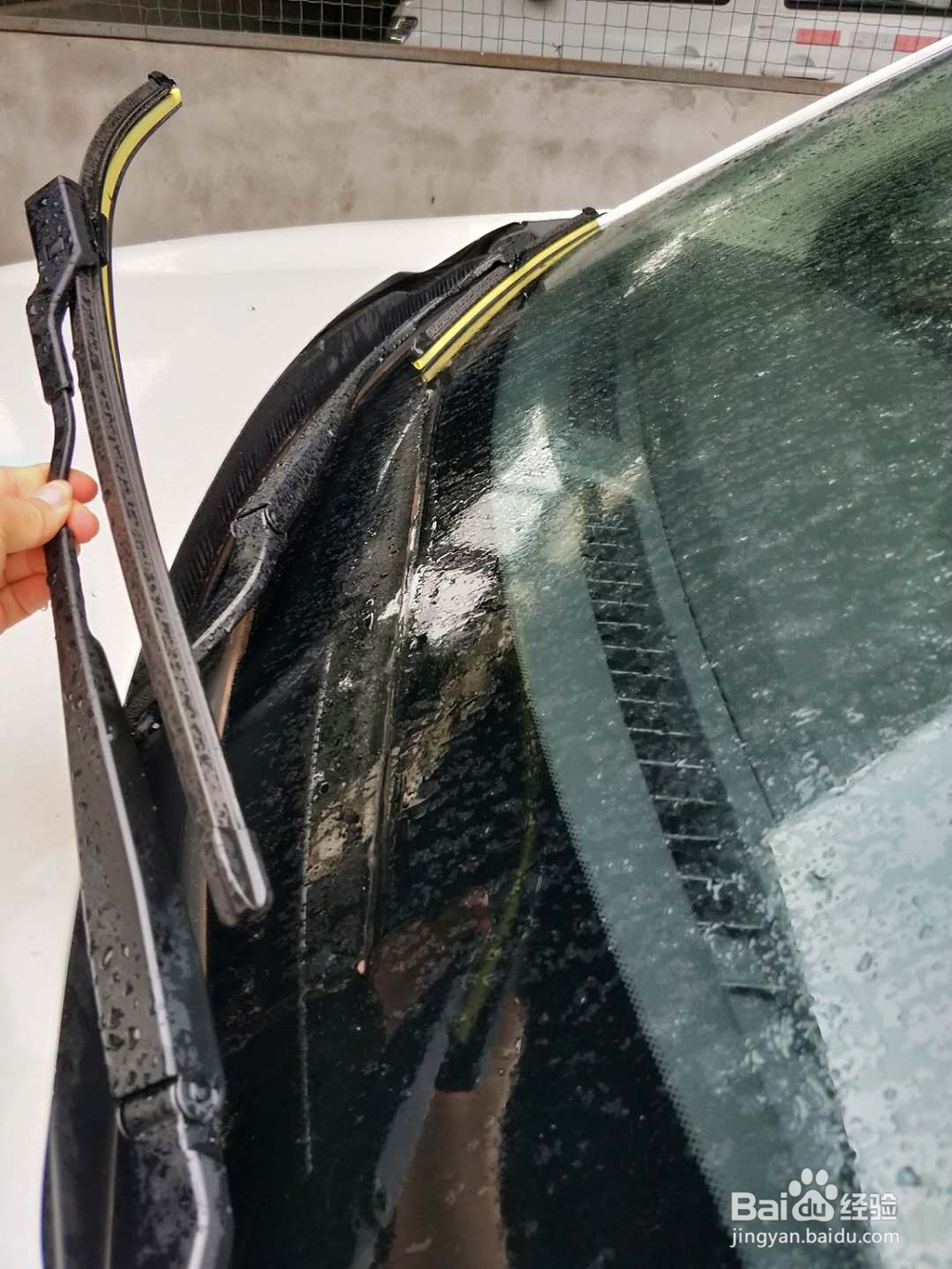 雨刮器挂不干净。玻璃上存在污垢。解决办法:将玻璃用水浸湿,用手轻轻地在玻璃上来回摸一下,如果玻璃面上不平滑,说明有异物。清除时可以试着先用温水擦拭几遍以后,再用手轻轻的来回搓,也可以用报纸,将这些难以清除的污物一点一点地清除了,效果不错,水冲后再用手摸玻璃,非常平滑,然后再打开雨刮器一试,这样就会刮得非常干净。