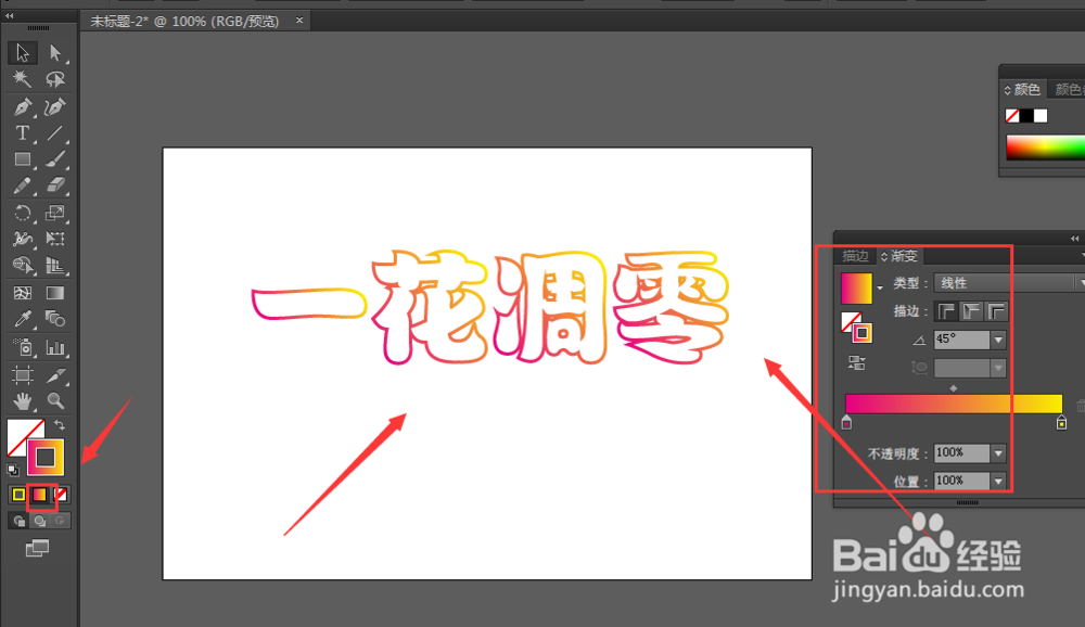 也可以将文字设置为渐变色的颜色,设置为渐变之前,需要先将文字转曲,然后再添加渐变色才可以成功。