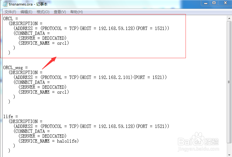 输入安装文件的路径,找到如图所示的文件tnsnames.ora,采用记事本的方式打开。