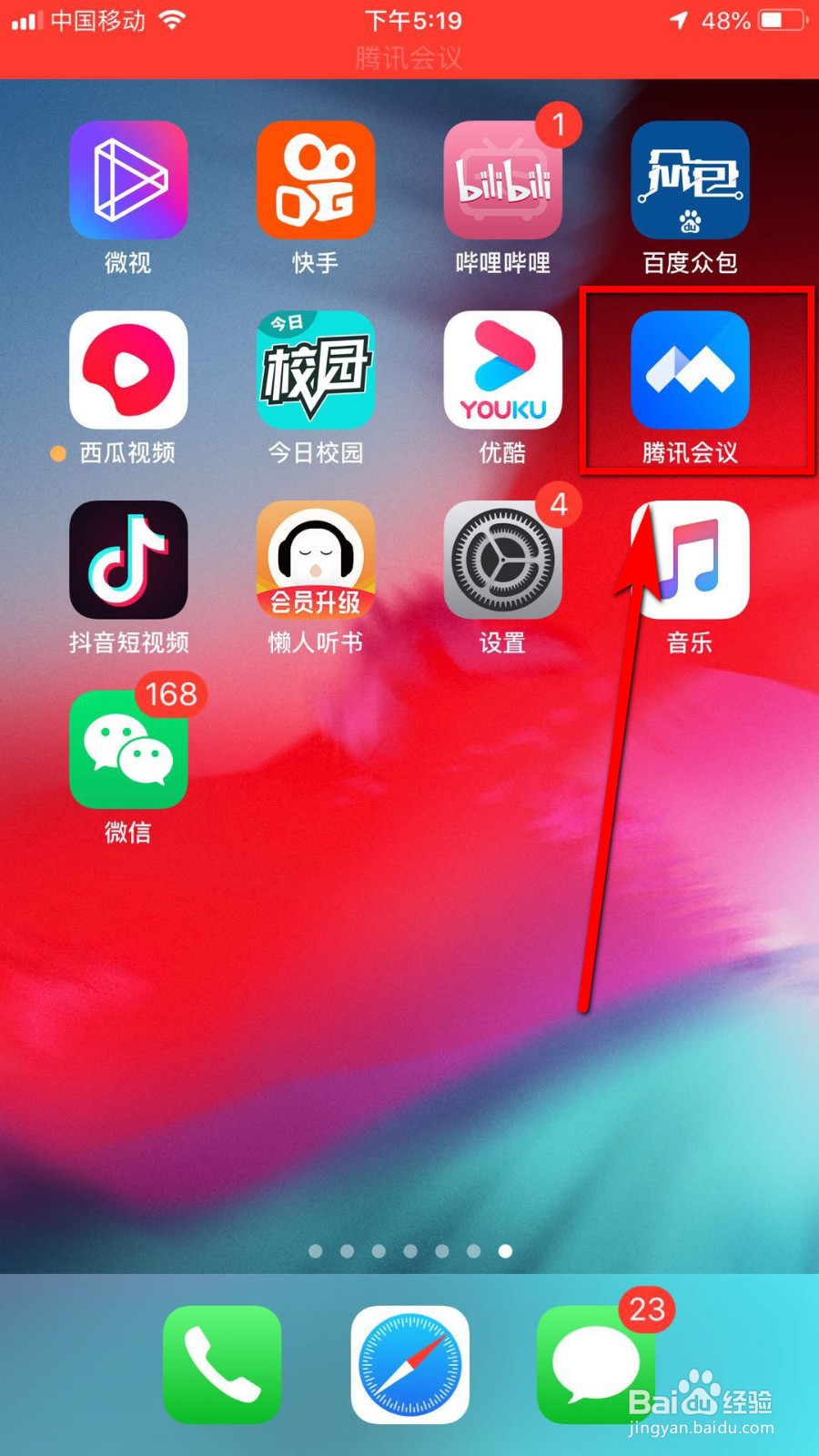 第一步,打开手机,找到腾讯会议,点击进入腾讯会议页面