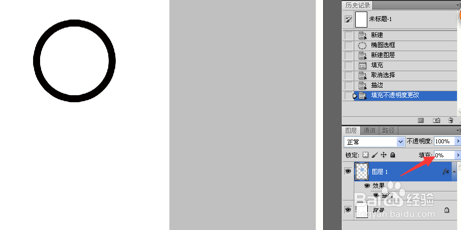 确定后在图层面板,将该图层的填充改为0,就得到一个圆环。