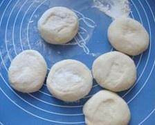 将饧好的面团揉匀,搓成长条,下成一个个的小剂,按扁