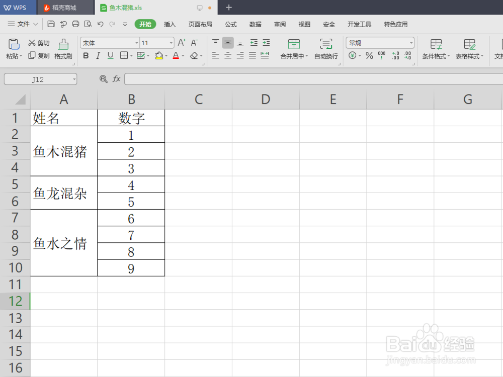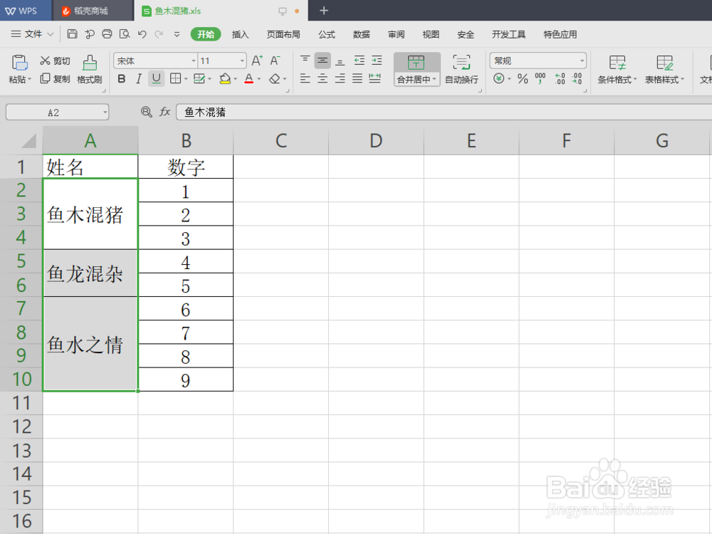 首先,用WPS表格打开含还有合并单元格数据的表格,如下图所示。