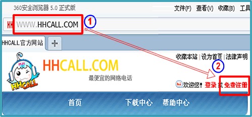 往泰国打电话用网络电话是很省钱,但是很多朋友不知道网络电话怎么打,其实并不麻烦:电脑上网后,插上耳机耳麦,然后注册网络电话帐号,下载网络电话软件安装好后就可以使用了,这里以国内网络电话品牌HHCall为例告诉大家如何操作:首先百度搜索 HHCall官网 点击进入或者在浏览器地址直接输入 http://hhcall.com 然后点击右上角的免费注册,