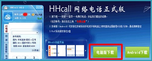 下载安装2:现已进入下载中心页面,点击“电脑版下载”,把HHCall下载到你的电脑上。如图