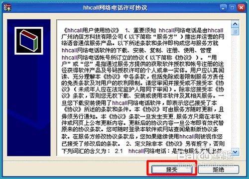 下载安装4:双击下载好的HHCall安装文件,此时弹出安装界面,点击“接受”,完成安装,如图