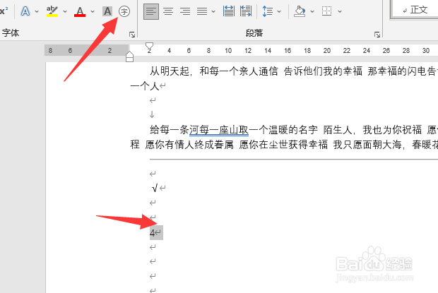 选中数字4,点击开始菜单栏下,圈字的图标
