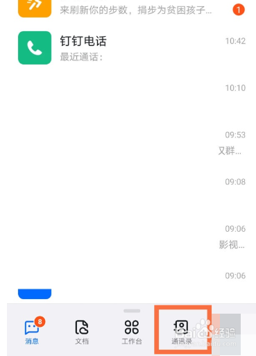 在钉钉功能界面中,找到并点击通讯录功能,打开该功能设置界面