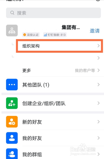 在通讯录功能设置页面下,浏览并找到组织架构功能,点击选择打开