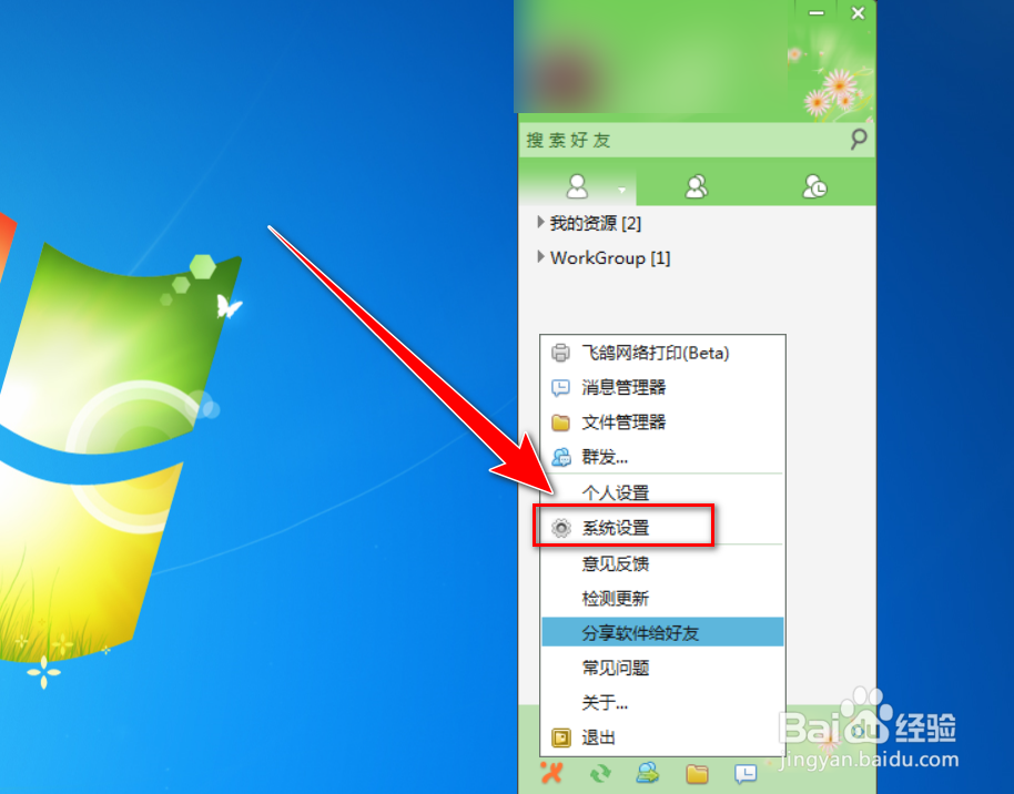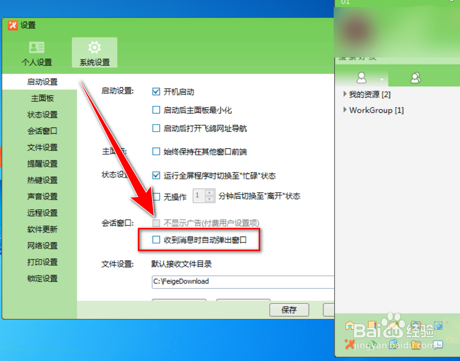 飞鸽传书如何禁止弹出消息提示窗口?请看下面的经验。