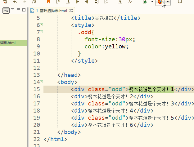 点击上面的浏览器图标,预览它的效果。可以发现上面的图中代码控制奇数行发生了变化。
