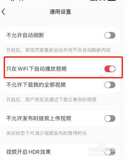 我们进入通用设置之后,然后我们点击里面的只在wifi下自动播放的功能。