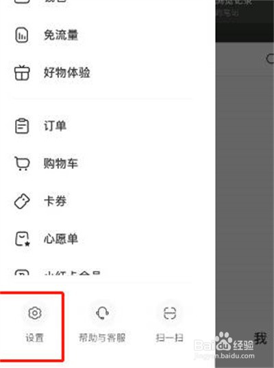 我们打开小红书软件,然后我们点击右下角我的,再点击上面的择贪三条横线接着排仗码点击里面的设置功能。