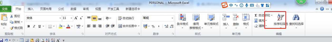 接着,我们点击菜单开始里面功能区的排序和筛选;