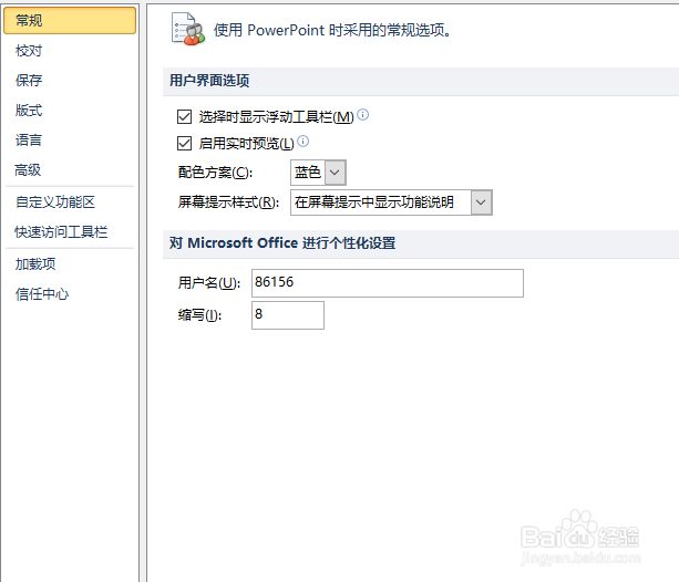 第二步:会弹出【PowerPoint选项】对话框,如图: