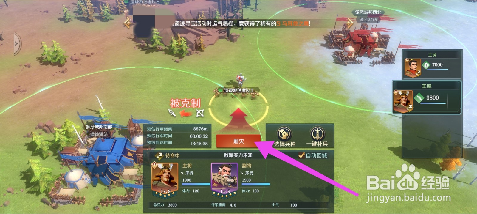 第五、派出一队兵力,点击“剿灭”,净化成功。