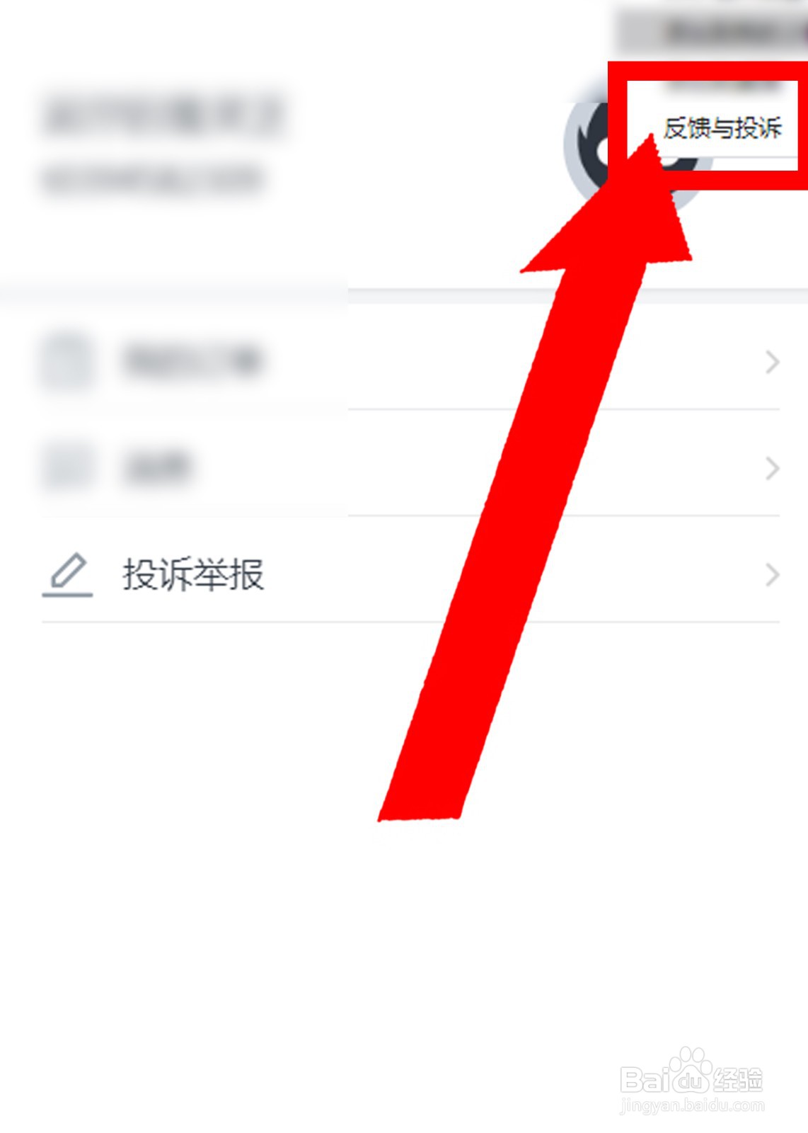 2、然后,在我的页面,点击右上角三个点,点击反馈与投诉,如下图所示