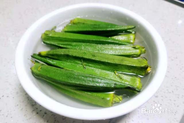 先将买来的秋葵泡在淡盐水中,浸泡大约3分钟左右