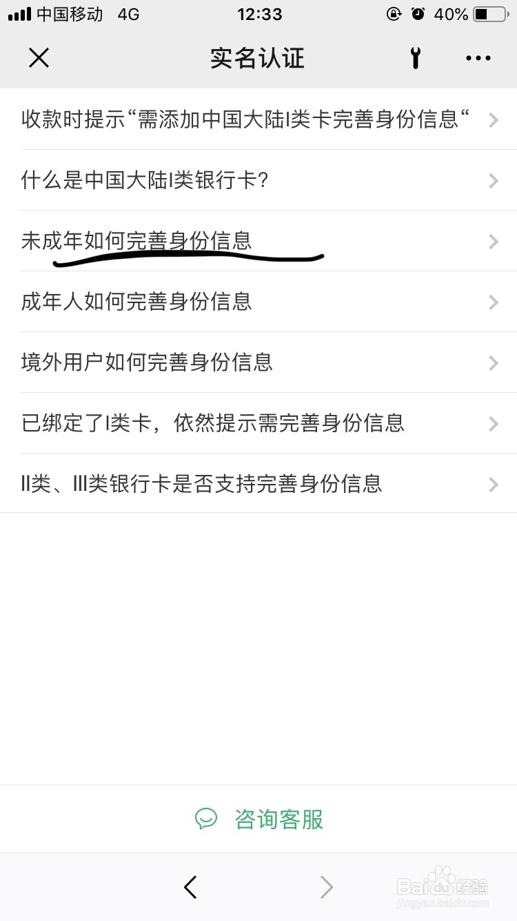 7.然后点击常见问题下的,未成年如何完善身份信息呢?