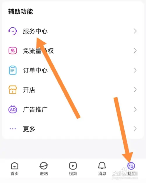 首先打开手机百度贴吧,点击我的,再点击服务中心