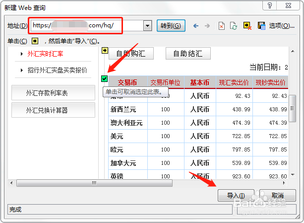 在弹出的对话框中输入要获取的网址,然后勾选需要导入的数据表格,单击“导入”按钮,如图所示: