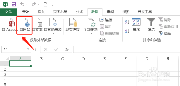 点击“数据”选项卡下的“自网站”命令,如图所示:
