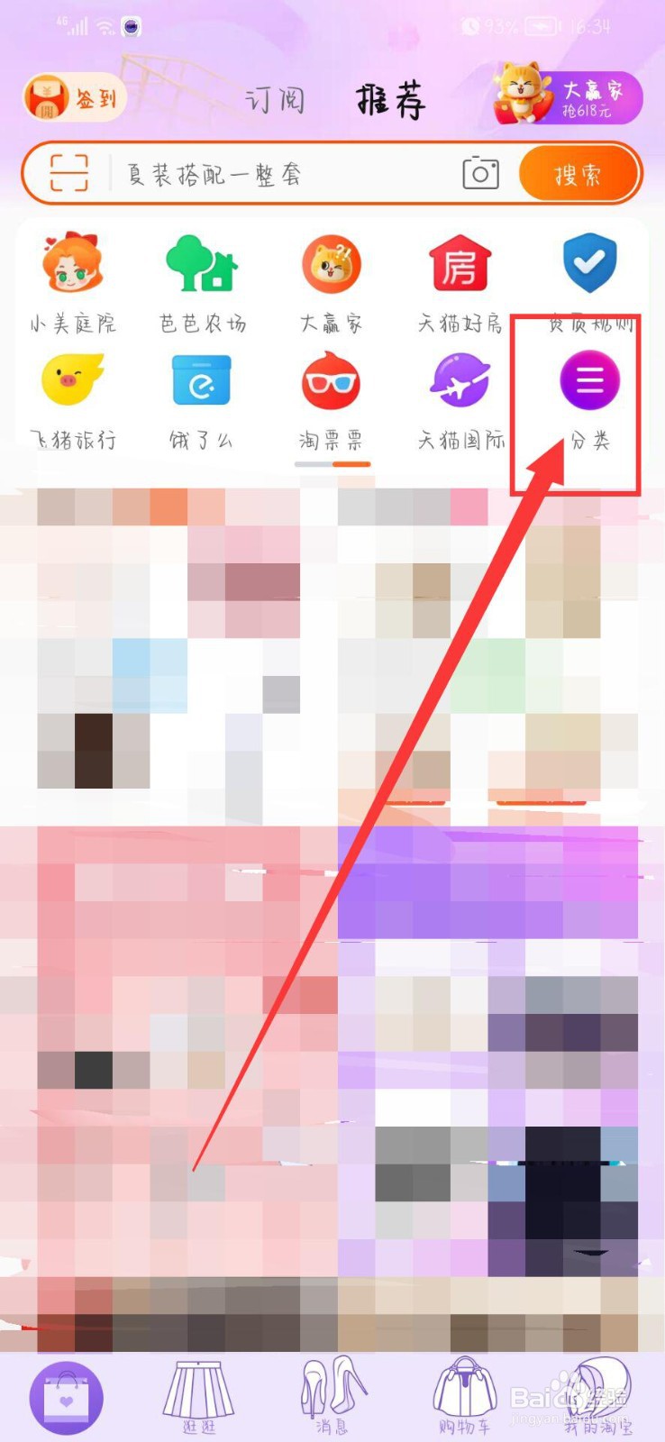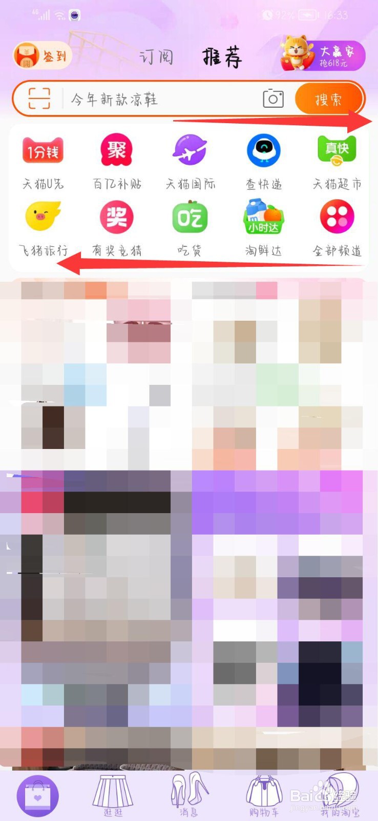 首先,打开淘宝,在界面点击上方往左边划过去。