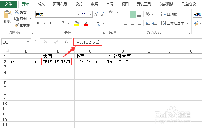 大写:如果待转换字符录入在A2单元格,则在需要返回想要结果的单元格内录入公式,=UPPER(A2),回车即可。