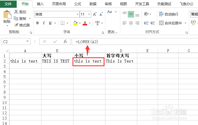 小写:如果待转换字符录入在A2单元格,则在需要返回想要结果的单元格内录入公式,=LOWER(A2),回车即可。