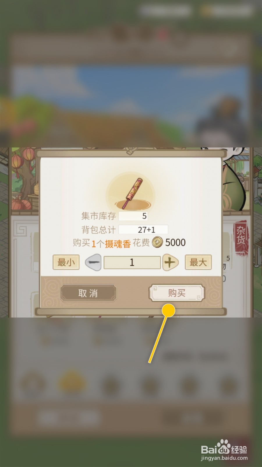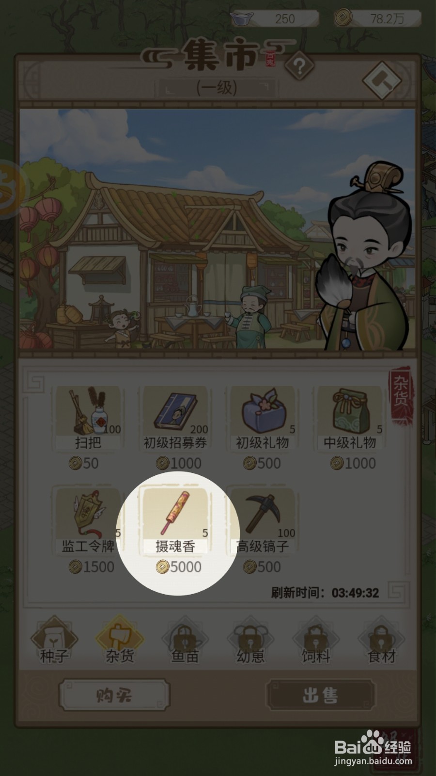 在“集市”建筑,选中“摄魂香”杂货图标。