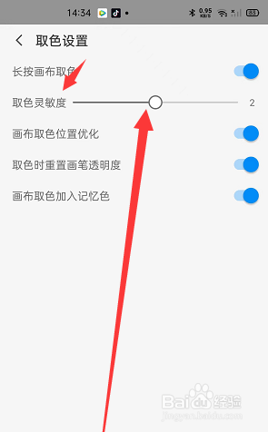 最终在取色设置页面上方找到取色灵敏度,拉动圆点调整灵敏度即可。
