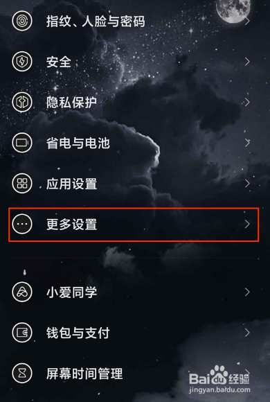 打开手机设置,点击更多设置。