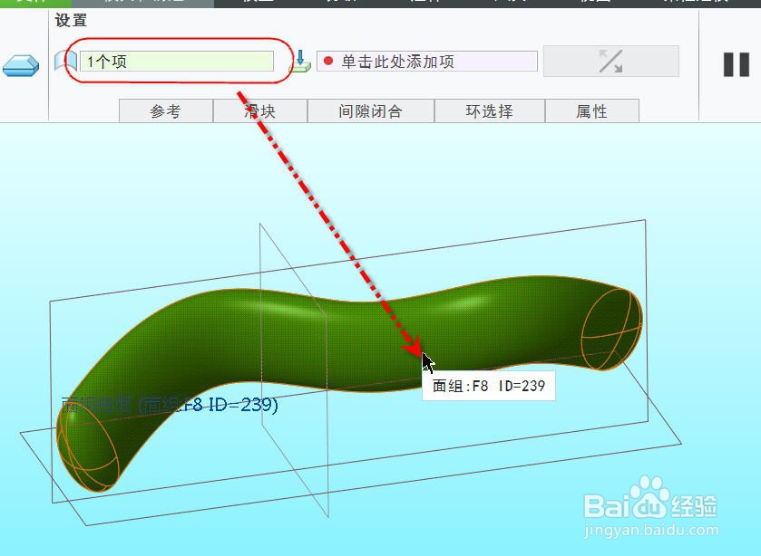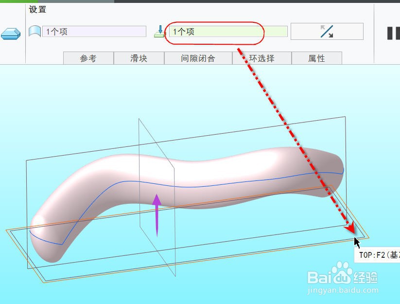 点击并激活【参考曲面】输入框,并选择图示的不规则面组。