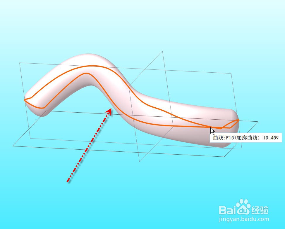 点击【确定】关闭操控面板完成【轮廓曲线】特征,便可得到不规则曲面的分型线,如图所示。