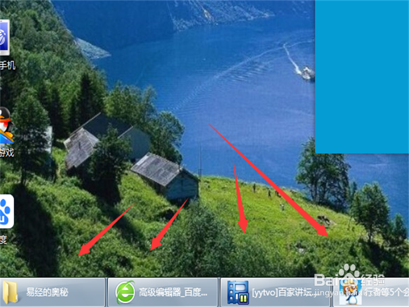 我们在安装一些版本儿的windows7系统的时候,发现我们在打开一些网页儿,欣赏一些图片,或者打开一些QQ聊天窗口的时候,发现这些页面,图片,或者聊天窗口的图标都被放入一个包裹里,这让我们想找到自己想要找的那个图标很麻烦,怎么把合并在同一个包裹内的任务栏里的图标分开呢?下面我演示给大家看.