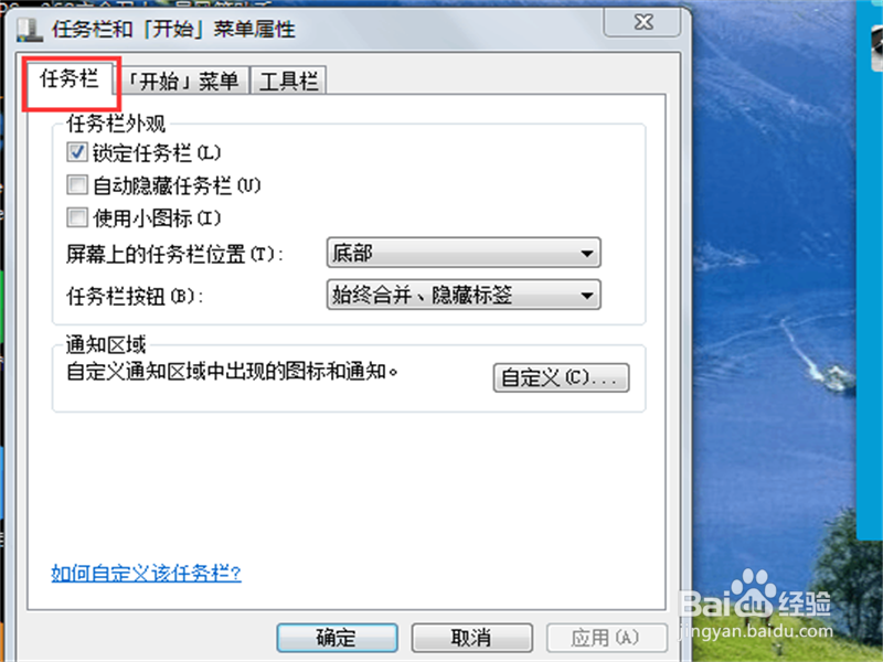 然后弹出一个对话框,选择上方菜单中的【任务栏】字样按钮。