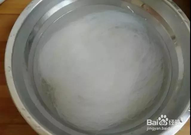 一根,粉丝,葱,姜,蒜,红辣椒,盐,蚝油,淀粉,十三香,鸡精,蒸鱼豉油第一步,准备一小把粉丝,用水冲洗干净后,放在盆中加入开水,提前泡软;