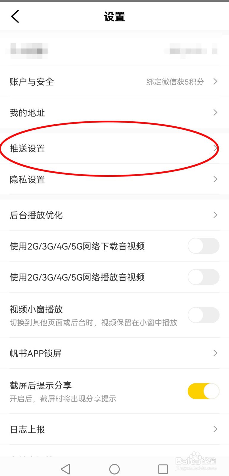 在设置页面中,点击【推送设置】