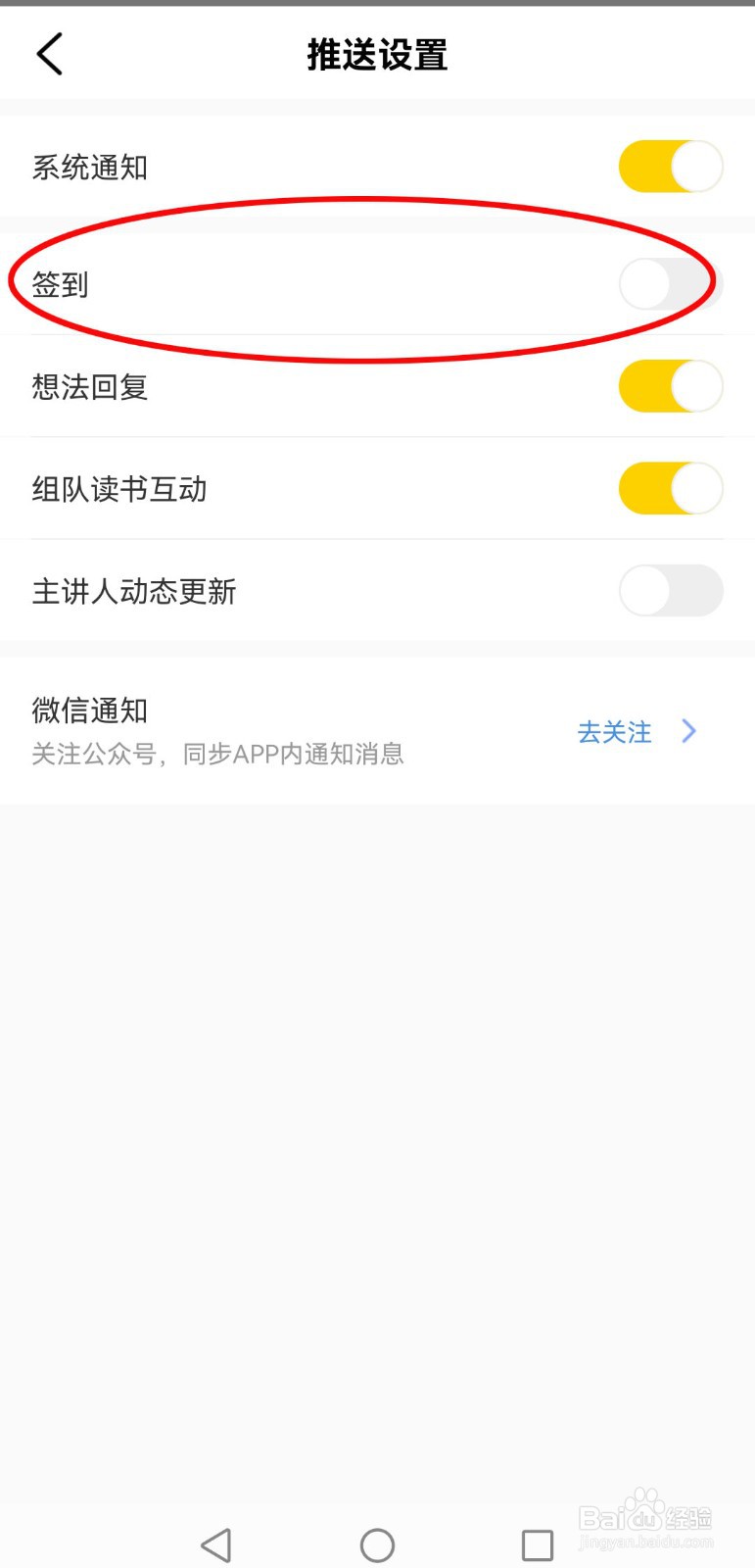 在推送设置页面,将【签到】关闭即可