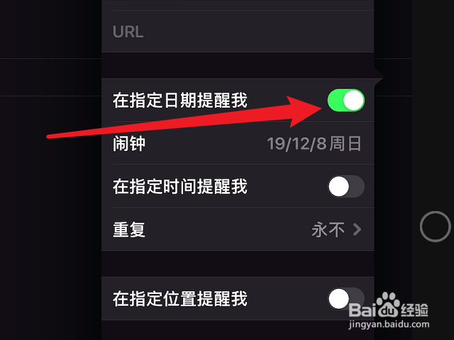 然后勾选在指定日期提醒我, 并设置具体时间, 重复中选择永不。