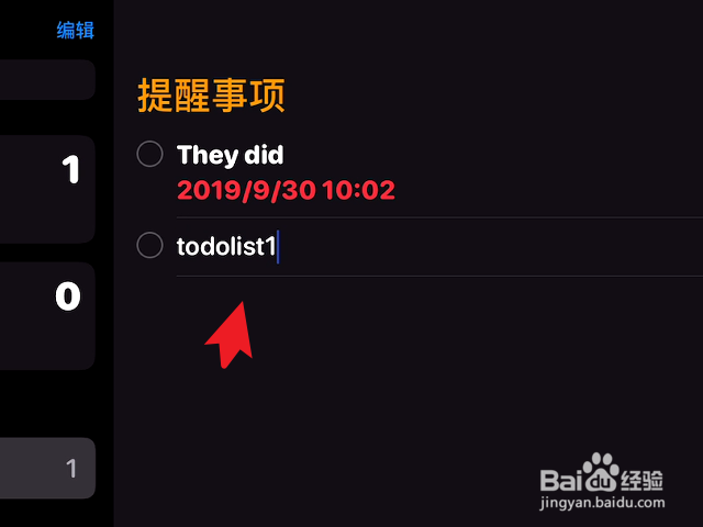 然后就可以在提醒事项中输入需要做的任务,比如todolist1, 按回车完成。